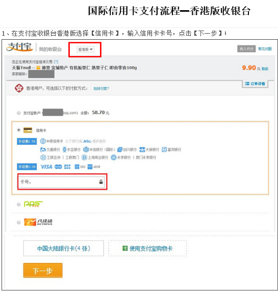 附錄二:香港信用卡在支付寶內(nèi)支付的教程:
